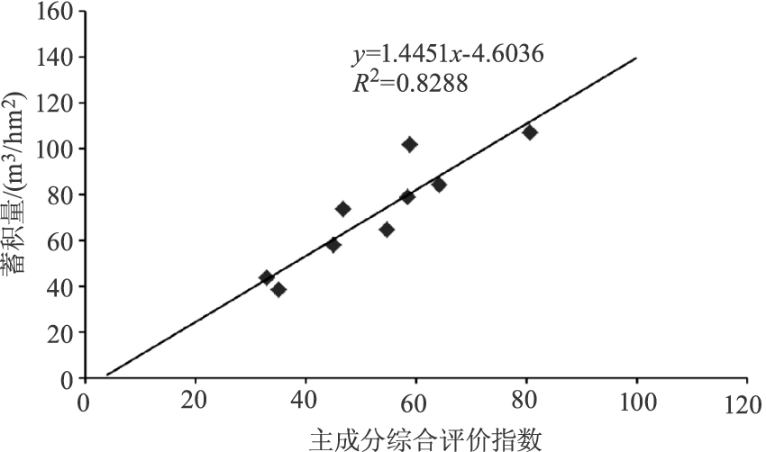 为了研究林分结构与生产力功能之间的关系,探讨确定杉木-闽楠混交林的合理林分结构,为维持群落结构稳定和提高林木生产力提供依据。以湖南省永州市金洞林场杉木-闽楠混交林为研究对象,利用获取的调查数据,运用主成分分析方法,分析平均胸径、平均高、郁闭度、混交度等林分结构因子与生产力功能间的耦合作用。建立林分结构与功能的耦合关系模型,对林分结构和生产力功能进行分析,结果表明,林分结构因子与生产力功能密切相关。生产力综合评价指数较高的林分具有的特征为:中等密度(1 500 株/hm2)、 郁闭度为0.7左右、林层结构为复层林。这种结构特征有利于保持较好的生产力功能,是金洞林场杉木-闽楠混交林的最佳林分结构。