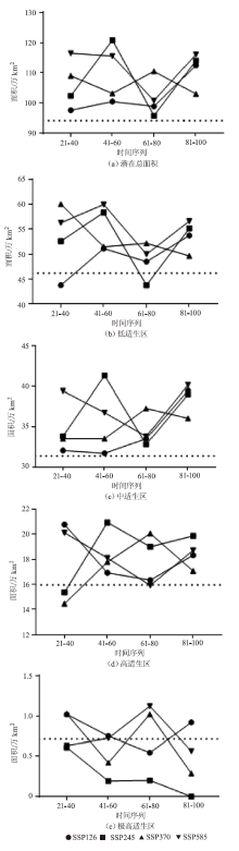 Cephalotaxus oliveri is an II-class national protection of wild plant and a tertiary relic species in China. Understanding its distribution range and its response to climatic factors is helpful to protect the species under climate change. In this study,geographical distribution records from literature and specimen was used to analyze the potential geographical distribution of C.oliveri in China through MaxEnt model. Moreover,based on CMIP6 date from Digital Terrain of China,C. oliveri potential distribution under four climate change scenarios in the following 80 yearswas predicted. The results showed that:1) precipitation in the driest month,slope and annual precipitation were the main climatic factors affecting the distribution of C.oliveri. 2)Under the current climate conditions,highly suitable habitat for C. oliveri accounted for 1.7% of the area of China,mainly concentrated in the southwest edge of the Sichuan Basin,Wuling Mountains - Shennongjia,Xuefeng Mountain,Nanling,Luoxiao Mountain,Dabie Mountain,mountains in Southern Anhui - Tianmu Mountain,Wuyi Mountain - mountains in Southern Zhejiang,Daiyun Mountain and Central Mountains in Taiwan. However,under current climatic conditions,the southwest population (located in Yunnan Province) was not in the range of highly suitable habitat,which may be related to the relatively few definite distribution points and microhabitat effects in the local.3)Overall,the response of C.oliveri distribution to future climate (warm and humid) would be insensitive. Under the four scenarios of climate change,the model predicted that the spatial distribution of highly suitable habitat of the species would not change significantly. The area of low,medium,highly suitable habitat and all degree of suitable habitat would generally increase. The most highly suitable habitat of the species would slightly change under future climate except the SSP245 scenario,which would decrease continually.