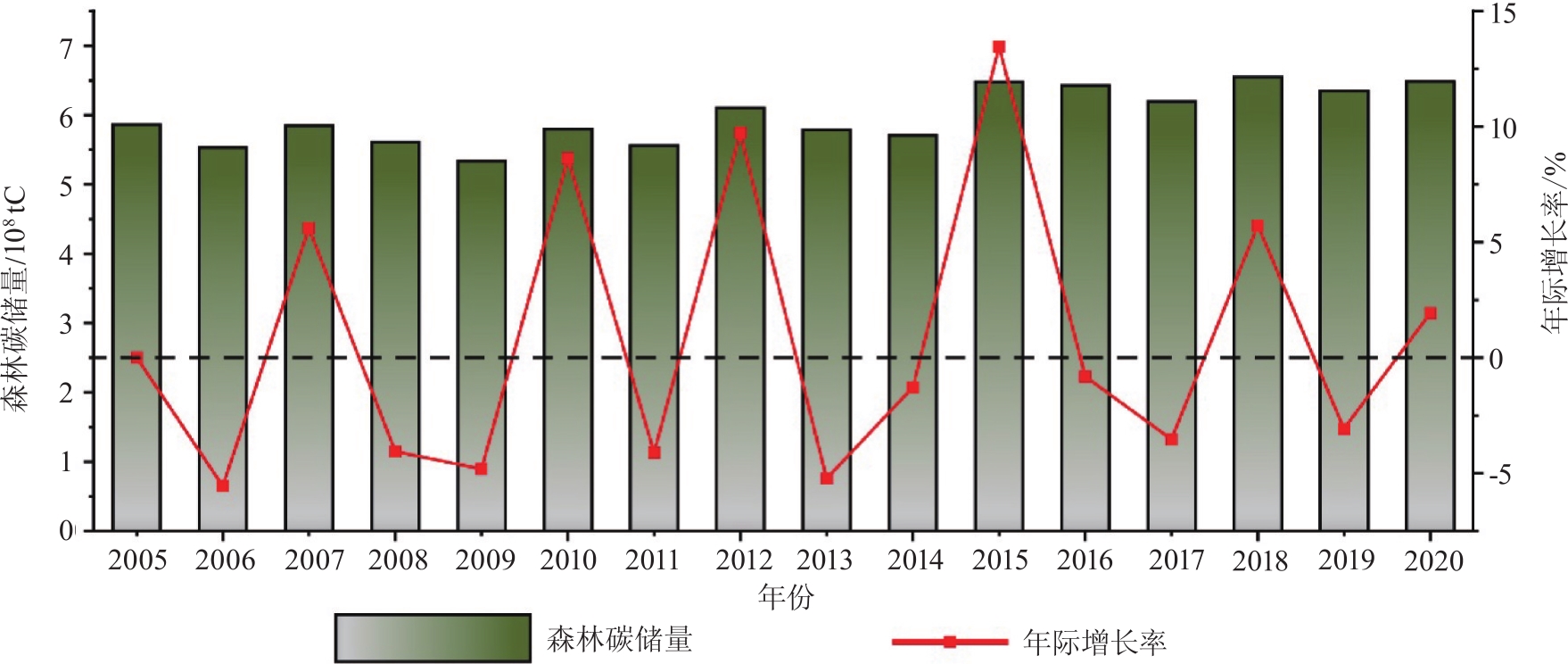 2005—2020年江西省森林碳储量时空变化趋势及影响因素