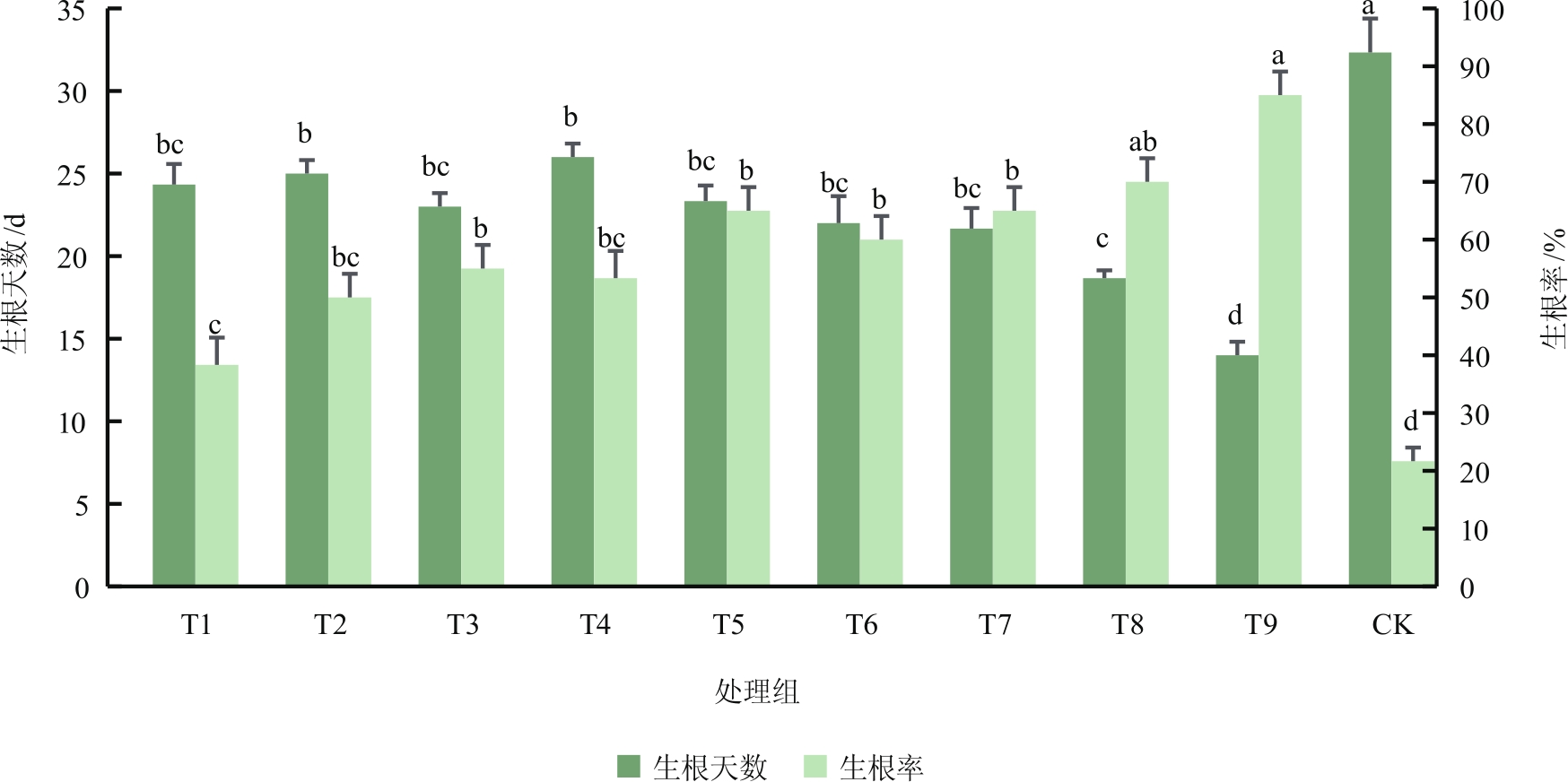基质和外源激素处理对多花勾儿茶高空压条生根的影响