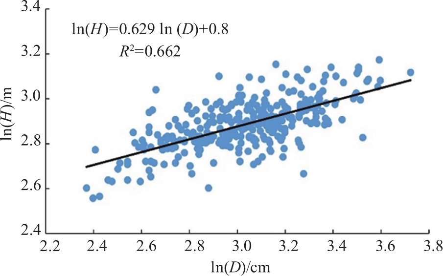 为降低传统野外调查成本,提高高郁闭度森林资源调查效率,以多光谱无人机影像结合实地样地调查数据为源数据,以马尾松纯林为研究对象,采用冠层高度模型(CHM)及多光谱影像6种植被指数构建模型,估算研究区林分蓄积量。结果表明:1)高分辨率数字高程模型的辅助能够有效弥补无人机影像在茂密森林无法提取地面点的缺陷,可提高CHM构建的精度,实现在茂密森林树高的准确提取;2)采用CHM提取研究区单木树高并估算蓄积量时,样地内共提取马尾松292株,提取的平均树高为18.77 m,小班区域内共提取马尾松18 120株,提取的平均树高为17.02 m,实测平均树高为18.17 m,平均树高提取效果较好,估算蓄积量为7 466.74 m3,实测蓄积量为9 024.40 m3,蓄积量估算精度为82.90%;3)植被指数模型的RMSE为0.39,R2为0.84,模型精度较高,蓄积量估算为8 620.30 m3,估算精度为96.26%。通过借助无人机遥感技术,两种蓄积量估算方法均能在高郁闭度森林中实现蓄积量的快速估算,其中通过多光谱数据提取植被指数构建模型估算蓄积量的效果更佳,这为进一步推广无人机影像在高郁闭度森林资源调查中的应用提供了有力的科学依据。