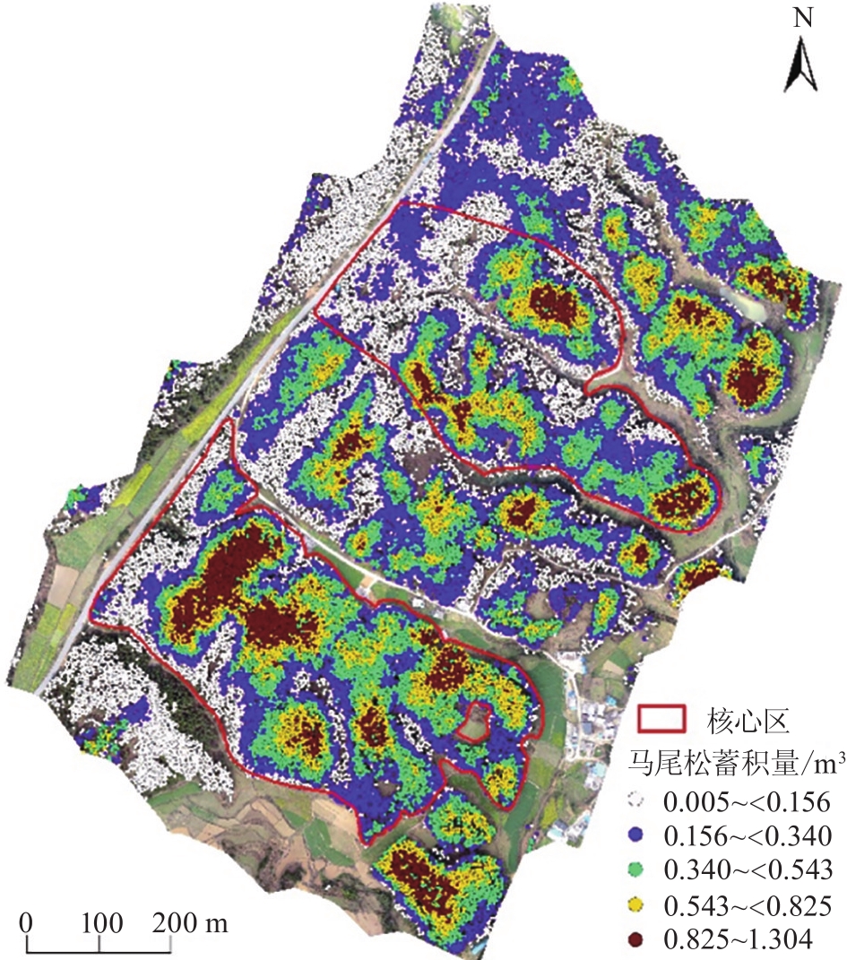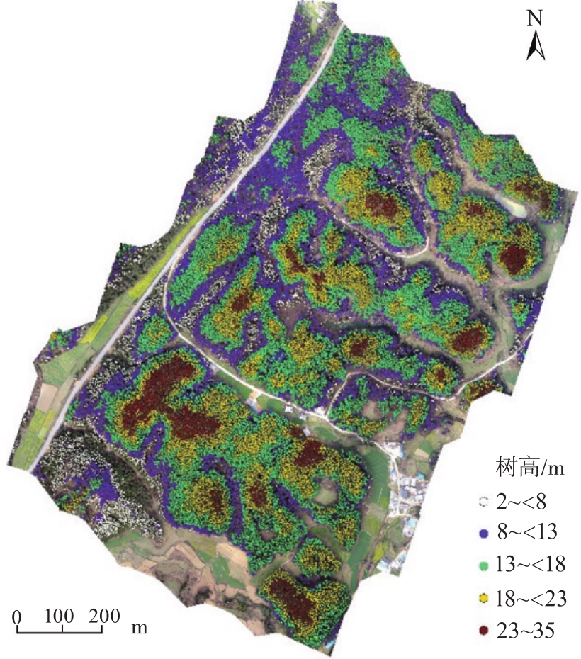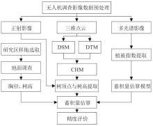 Key words: UAV image, high canopy density, Pinus massoniana, canopy height model, vegetation index, stock volume
