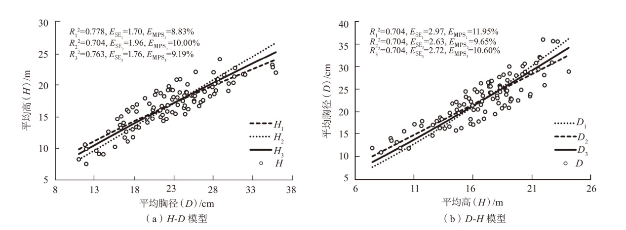 互为自因变量模型的拟合可以采用对偶回归方法,但在应用时必须提供两个变量之间的误差结构关系,且统计之林(ForStat)中只在线性度量误差模型中涉及该方法的应用,给林业建模工作带来不便。利用东北地区100个红松林样地的优势高、平均高和平均胸径实测数据,分析了在拟合林分优势高与平均高模型、平均高与平均胸径模型时存在的两条回归线问题,进一步研究提出通过引入哑变量区分两条回归线,再采用非线性误差变量联立方程组或利用多元非线性回归估计方法求解各类互为自因变量模型参数的两种新方法。新方法不仅适用于林分优势高与平均高等常见的线性模型,也适用于林分平均高与平均胸径等非线性模型。