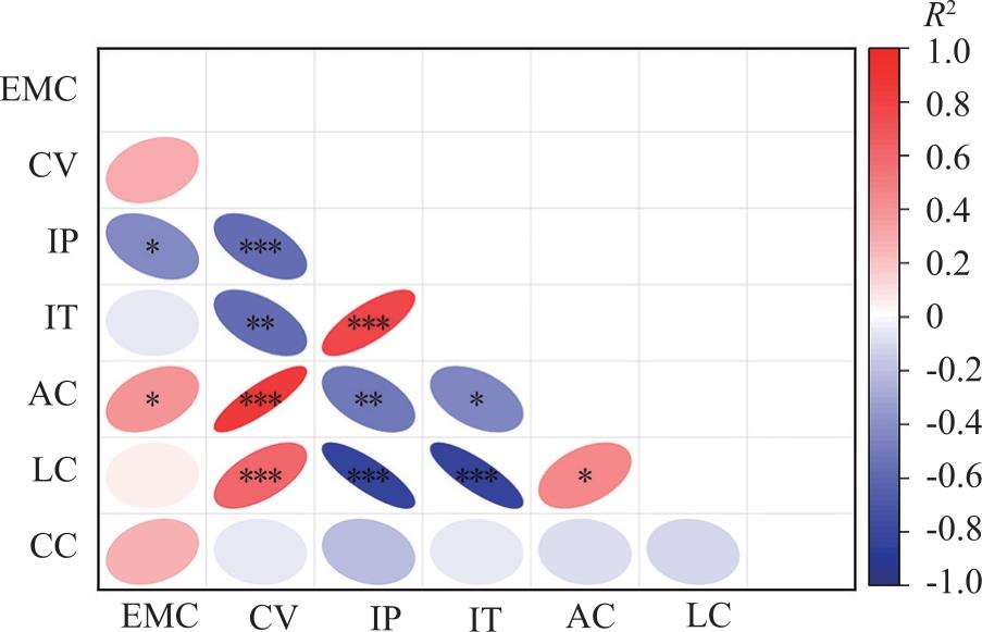 | 木质素(LC) | 0.874 | 0.448 | -0.332 | -0.282 | -0.280 | -0.275 |