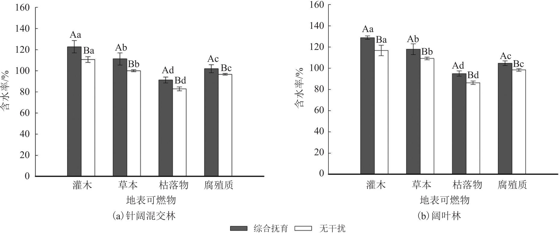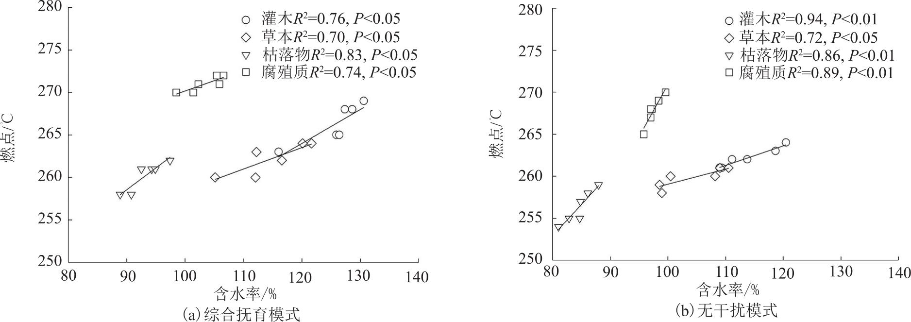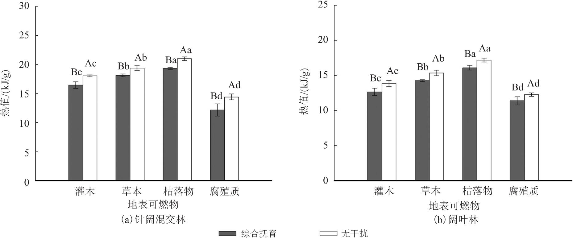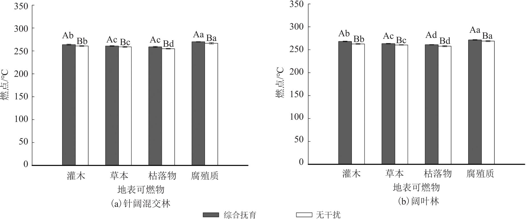 Key words: management mode, natural secondary forest, surface fuel, water content, ignition point, calorific value