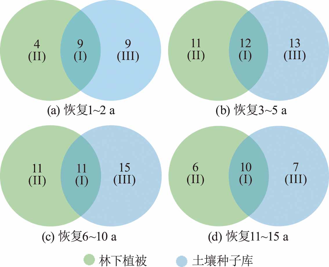 | 类型 | 恢复年限/a | 土壤种子库 | 林下植被 | |||||||